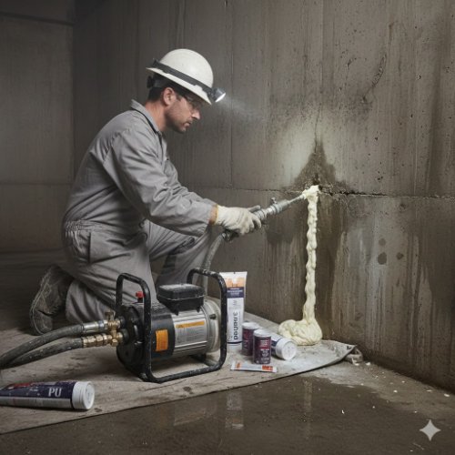 PU Grouting is an effective waterproofing technique used to stop active water leakage in cracks, joints, and damaged concrete. By injecting expanding polyurethane material, we seal leak paths, strengthen structures, and ensure long-term water resistance.